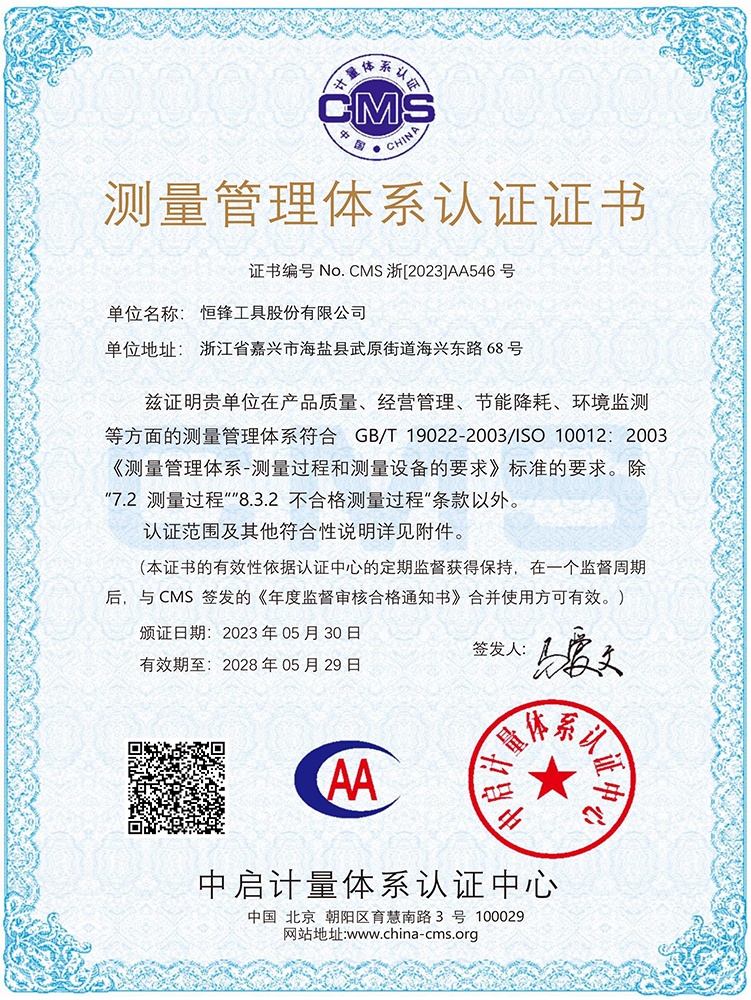 测量管理体系认证证书