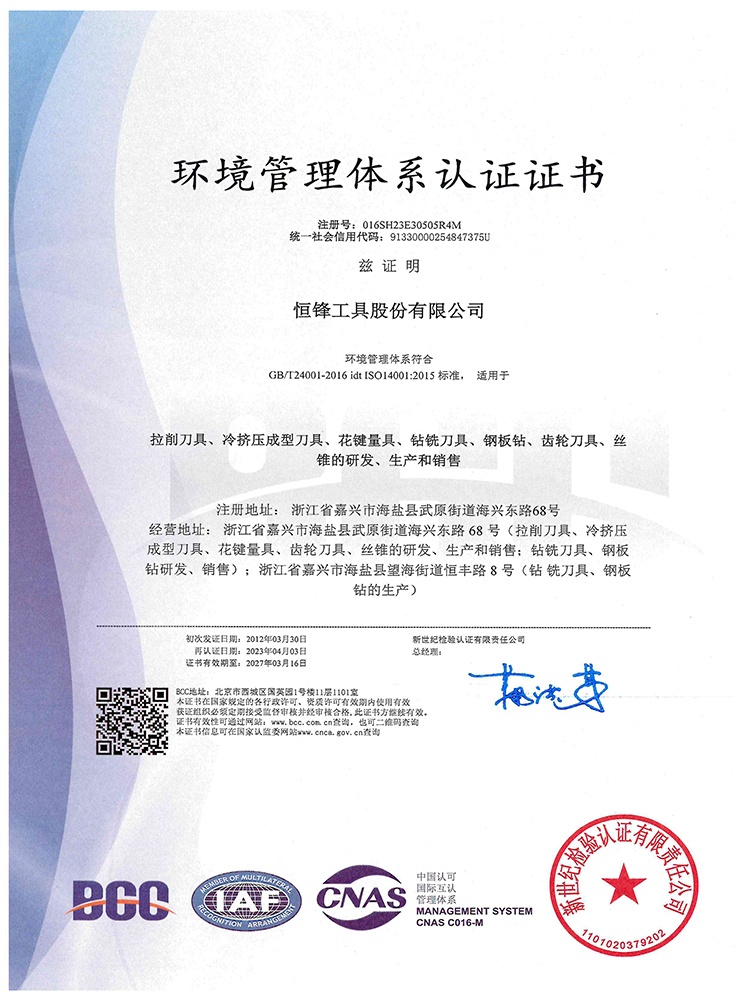 IS014001 环境管理体系认证证书